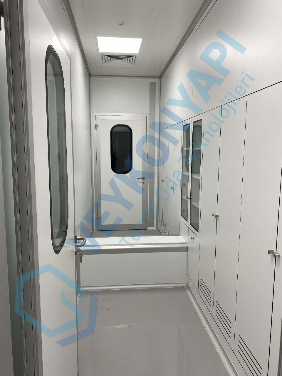 used in garment change areas to separate clean and dirty zones. Personnel can step over them
